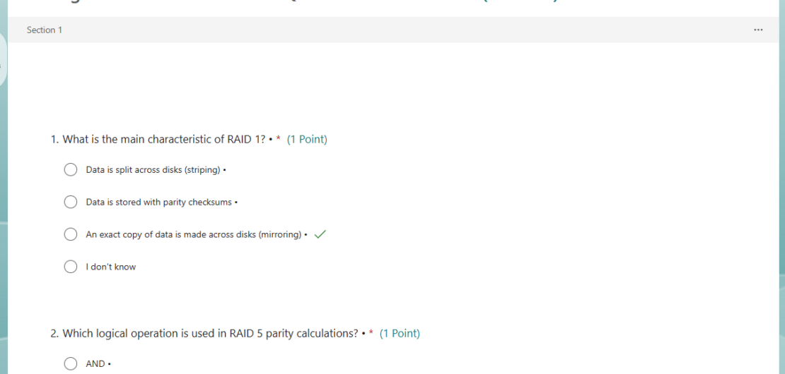 Based upon this these teaching slides for 2025 Pearson T-Level Level 3 in Digital Software Development, please can you create five multiple choice questions for recall testing. The last option of each question should be I don't know. Please also indicate the correct answer. Please create the answer in a word document for which I can use the Quick Import feature in Microsoft Forms. I understand the format of the questions should be: